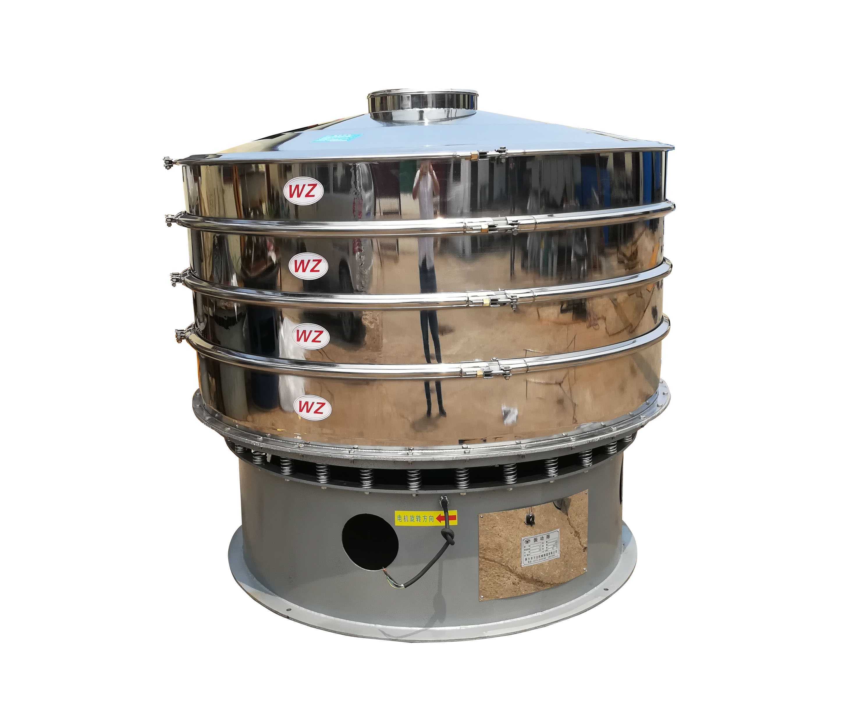 旋振筛是一种高精度细粉筛分设备,其噪音低、效率高、快速换网仅需3-5分钟,全封闭结构,适用于粒、粉、粘液等物料的筛分过滤。在原料筛分环节中旋振筛是一种通用设备。所以其角度的调整是否正常是很重要的内容,但在不同的行业、不同的使用目的、不同的使用条件等因素影响下,旋振筛偏心块角度的调整是有一定的依据的。现在就旋振筛角度在不同的使用条件下是如何调整的进行讲解,帮助三次元旋振筛的使用者掌握相应的调整技巧。