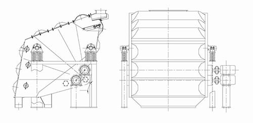 整体结构主要由这几部分组成:带分流装置的进料口、支架、带快速插销的检修上盖、振动弹簧,振动电机、筛体等配件组成。振动弹簧连接在振动支架上,支撑着筛体,振动电机与筛体的安装桥架进行布局安装。带快速插销的检修上盖位于筛体上侧,方便快捷打开上盖查看筛网的使用情况。概率筛是根据双振动电机自同步直线振动原理制成。在振动过程中由电机产生的纵向激振力(由于两电机反向同步转动横向力抵消)使筛体沿水平面成一倾斜角度的方向作直线振动,从而使物料在筛网上向前不断地抛物状运动,达到筛分目的。各层筛网沿箱体倾斜不同的角度并且相互间隔一定距离进行布置。大倾角布置的筛网使得筛网在过载的情况下也不至于被撕裂。